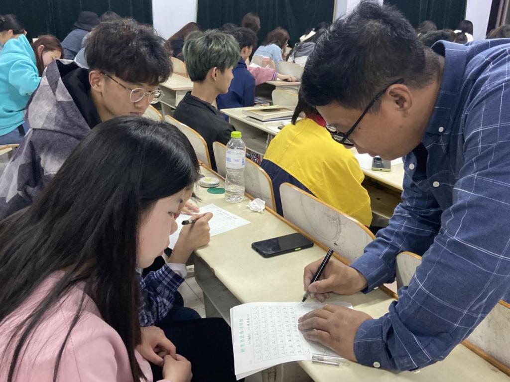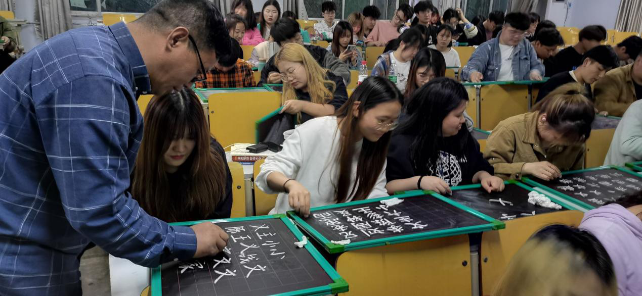为丰富实践形式,强化师范技能,进一步提高师范生“三笔字”的书写水平,近日,bbin游戏网站大全官网在全院师范生中开展三笔字书法系列培训活动,邀请德州市书法协会副主席曹振童老师为学生进行三笔字书写指导。三笔字是教师必备的基本技能,更是自身素养的深度体现,bbin游戏网站大全官网充分利用课余、闲暇时间,将书写训练全面渗透,逐步引导学生思想上重视,行动上落实,成果较为显著。