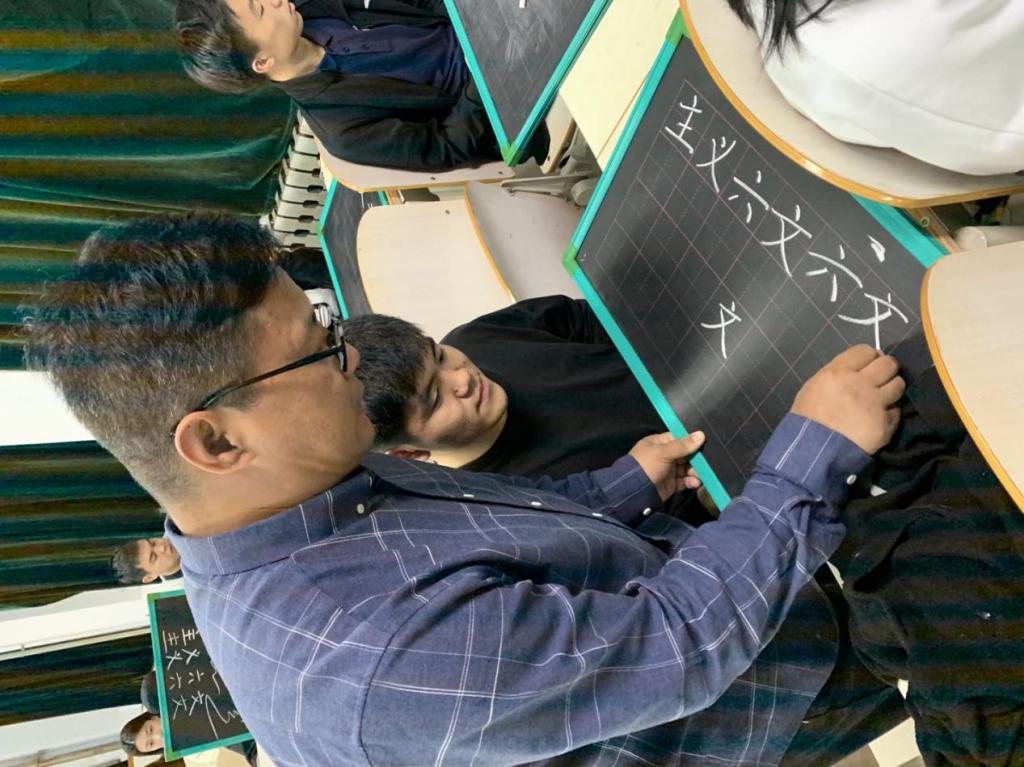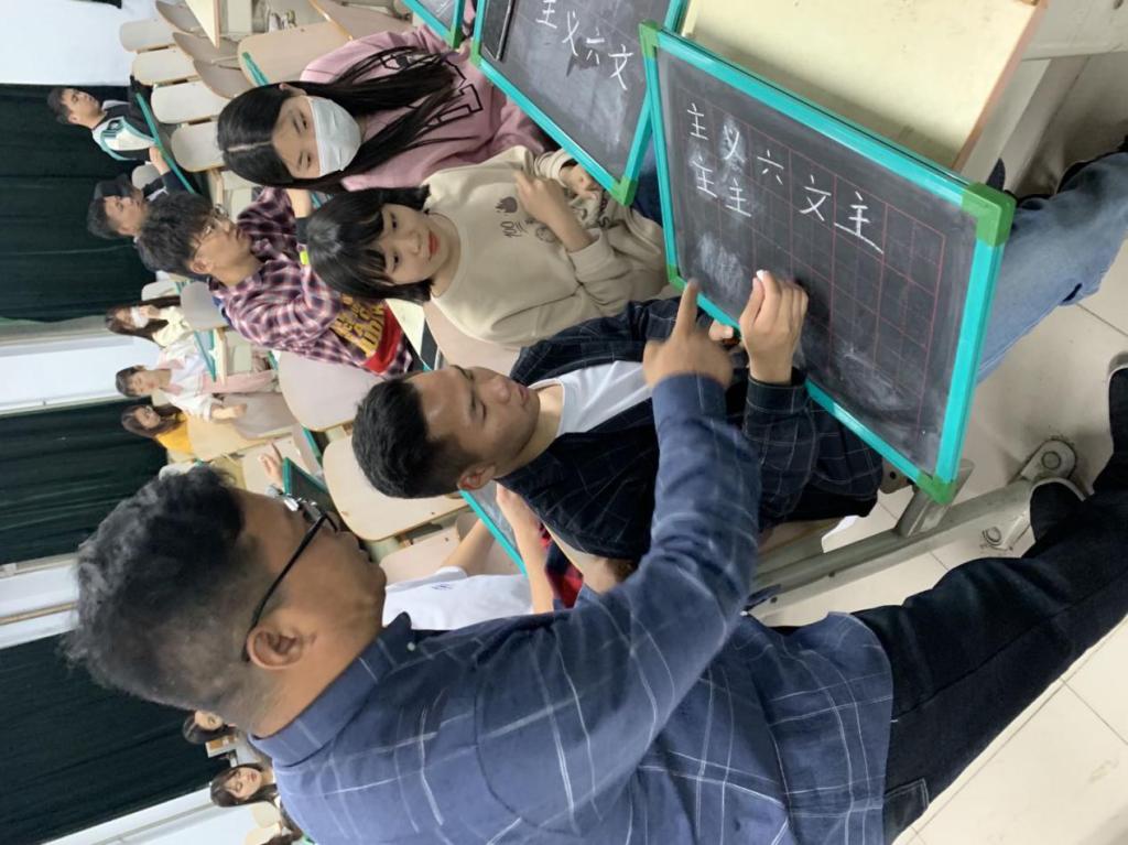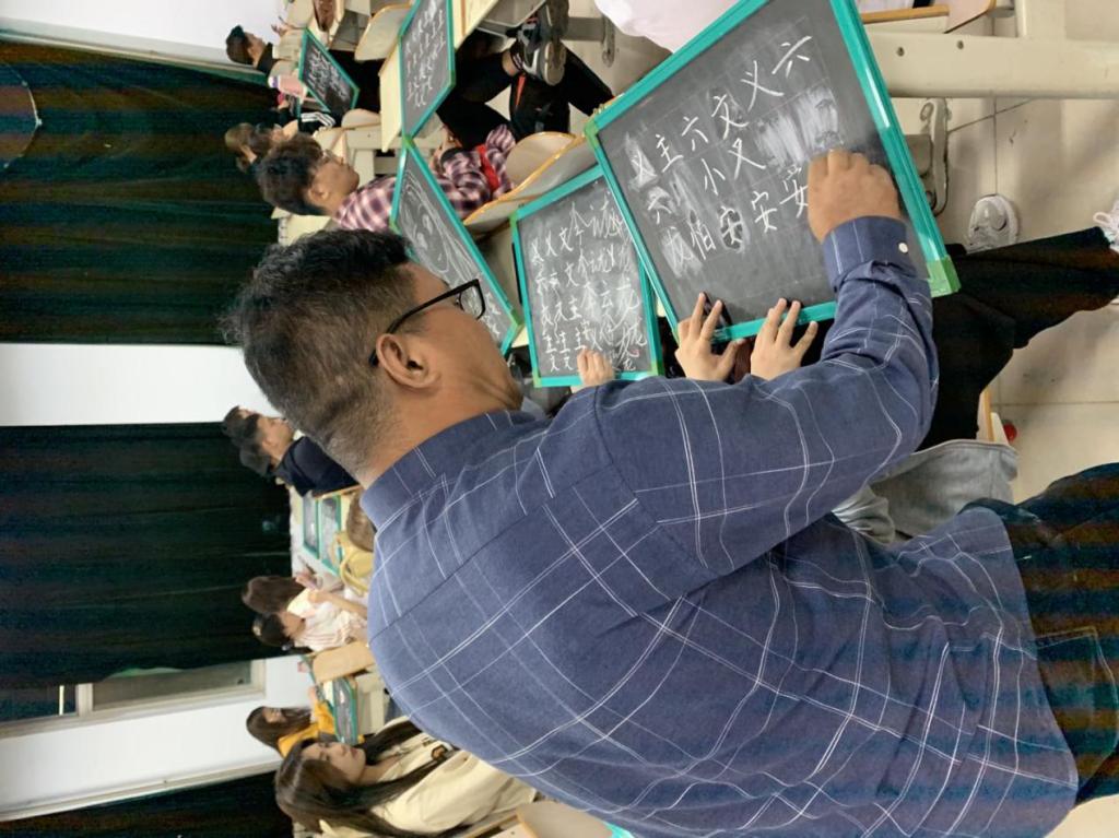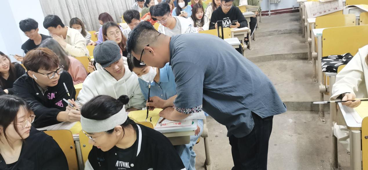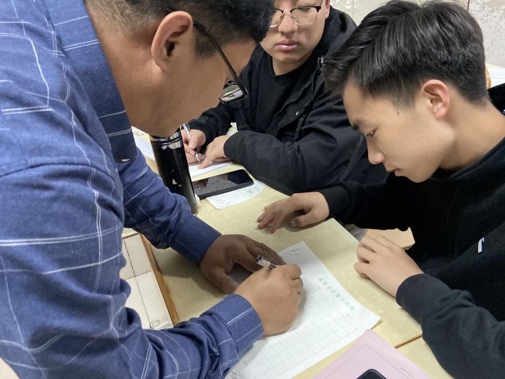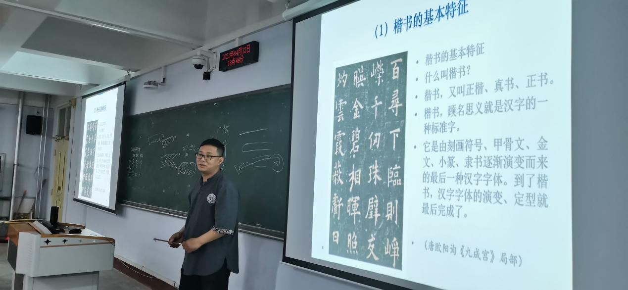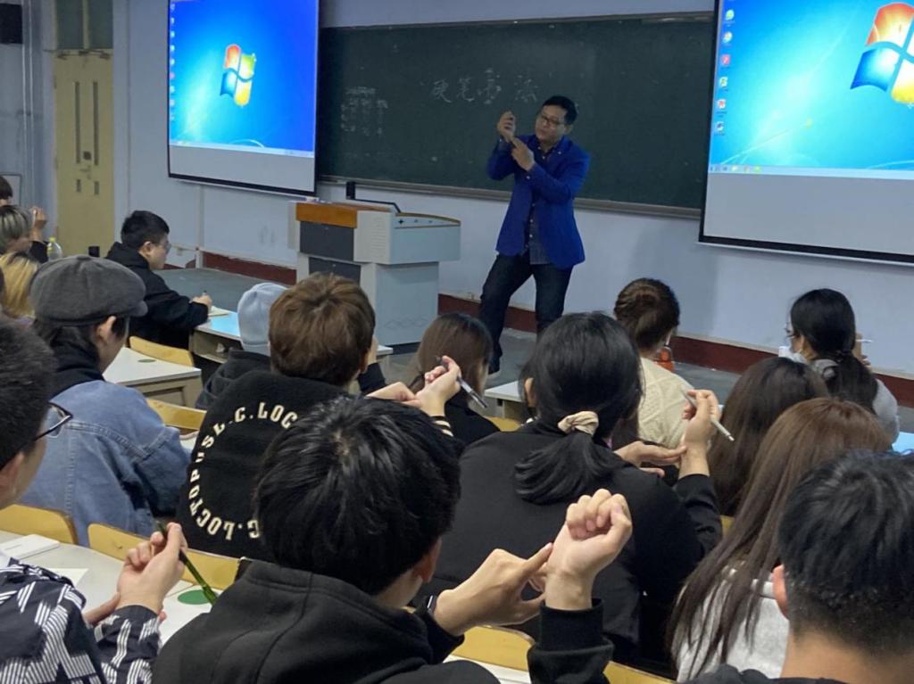 培训活动由曹振童老师主讲。曹老师分别对三笔字书法的学习思路、汉字发展史进行了讲解,对汉字书写笔画、间架结构、笔顺规则以及练字的基本要领进行了阐述,并对学生的书写姿势、书写技巧等进行了现场指导。