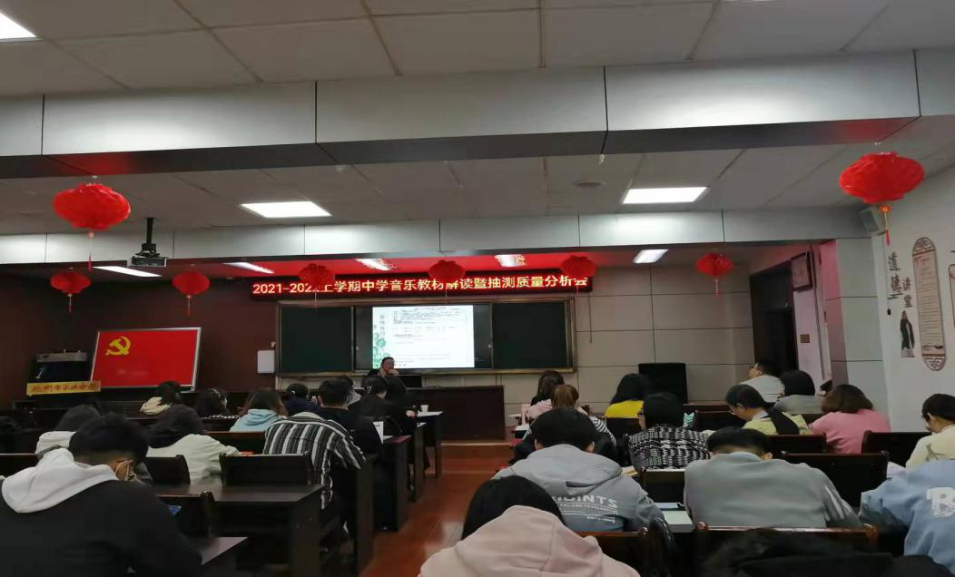 10月14日下午,音乐学19级师范生在指导老师的带领下走进德州市第五中学,参加由德城区举办的《扬美育风帆 育美丽人生——2021-2022上学期中学音乐教材解读暨抽测质量分析会》。