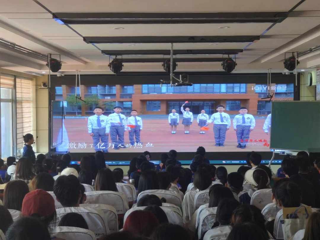 观摩课堂上,授课教师用PPT演示了歌曲,栩栩如生的动画风格受到了同学们的一致好评,随后教师带领学生们进行集体的才艺展示。