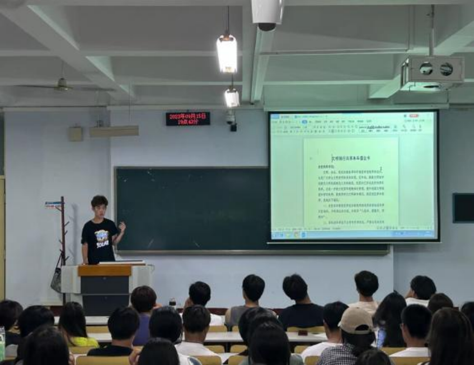 为进一步提升大学生思想道德水平和文明素养,引导学生自觉正言行、律举止、修内涵,形成大学生文明新风尚,9月15日,bbin游戏网站大全官网在5号楼201、202教室开展“提升文明素养,争做文明标兵”主题班会。