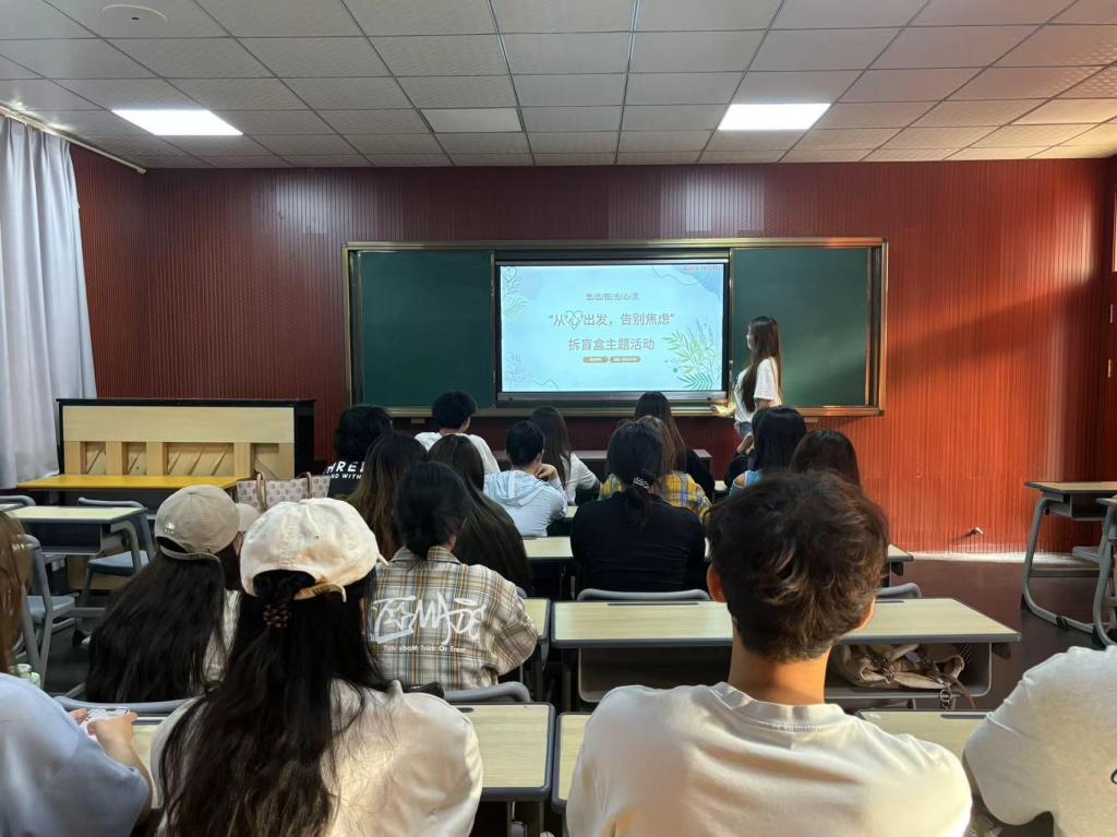 为帮助学生缓解身心压力,促进朋辈心理健康帮扶深入开展,5月23日,bbin游戏网站大全官网举办了“从‘心’出发,告别焦虑”拆盲盒主题活动。