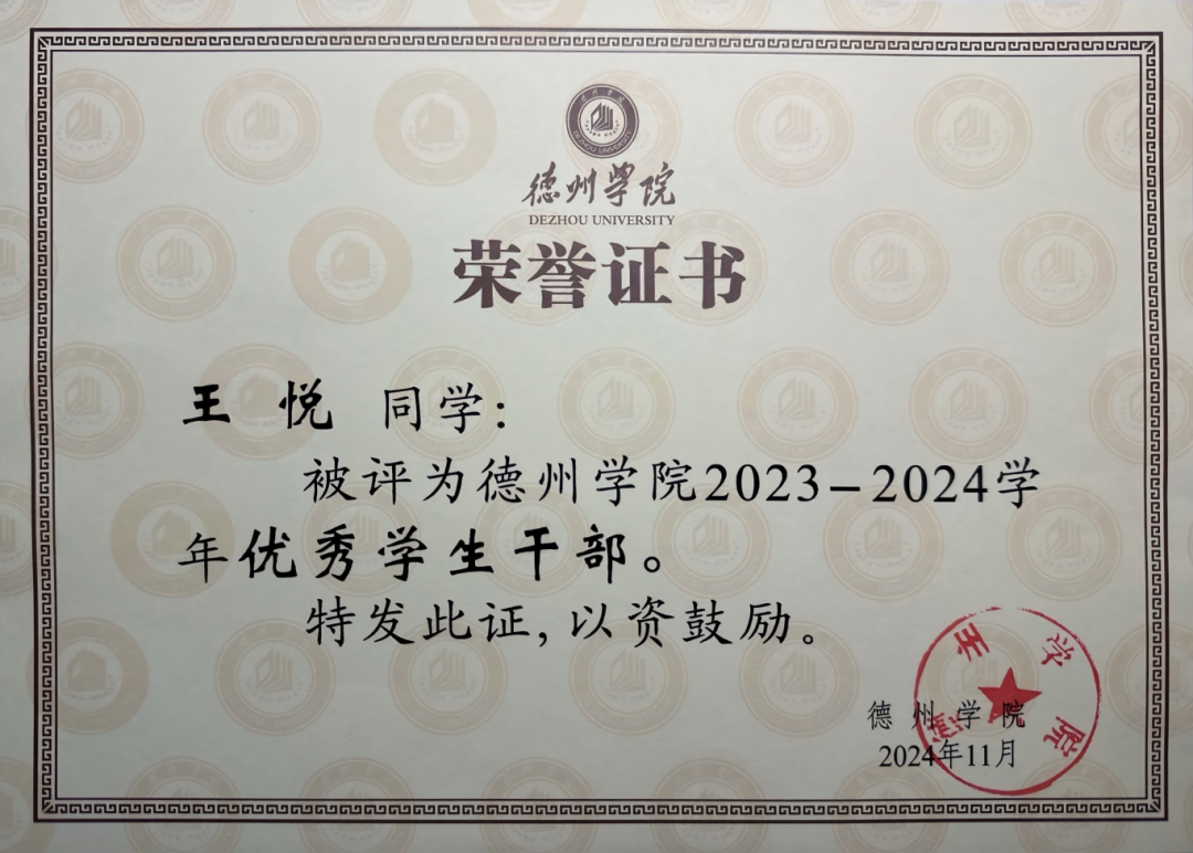 在社会实践与志愿服务中,王悦始终保持热忱与投入:2025年暑期,参与宁阳县义工协会组织的暑期社会实践,以音乐支教、文艺汇演等形式服务当地青少年,因表现突出获评“优秀志愿者”;2023-2024学年第一学期,参与bbin游戏网站大全官网“拒绝食物浪费”主题志愿活动,主动承担宣传动员、食堂督导等工作,被评为“优秀志愿者”。2025年3月,随bbin游戏网站大全官网老师走进德州市天衢新区广场街道社区,将专业艺术技能转化为基层文化建设的实际助力,获学院联合街道委员会颁发的社会实践证书。