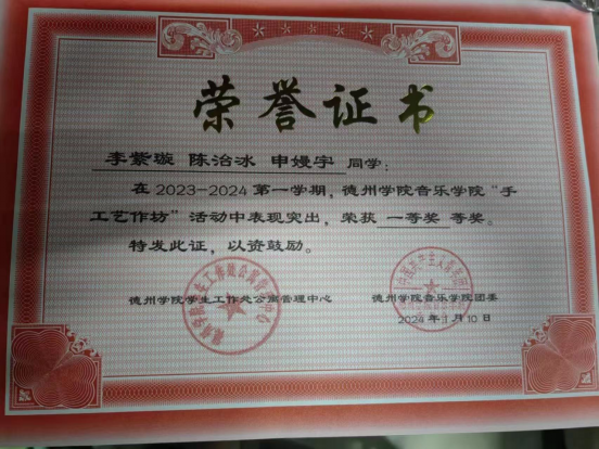 陈治冰的大学时光,像是一幅多彩的青春调色盘。专业上,她持续“充电”,积极参与“七天专业打卡”,用日复一日的坚持换来扎实的进步与一等奖的肯定;运动场上,她挑战自我,在八段锦比赛中以沉静从容的姿态拿下女子个人一等奖,展现出音乐学子动静皆宜的风采;创意世界里,她也毫不逊色,在“手工艺作坊”中把灵感化为作品,再次摘得一等奖。从舞蹈房到运动场,从舞台到手作台,她不断解锁新技能,也用行动诠释:青春,本该丰富而立体。从专业深耕到文体跨界,从创新实践到责任担当,陈治冰以多元发展为笔,在青春画卷上勾勒出绚丽多彩的篇章。