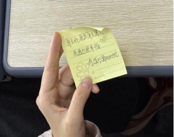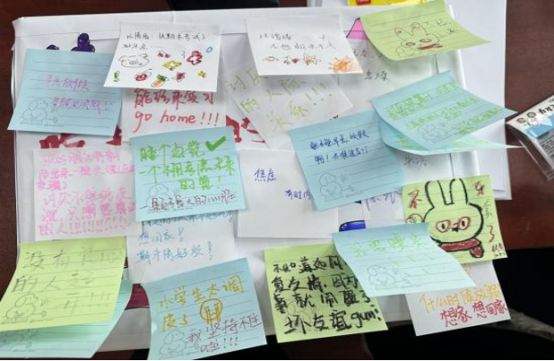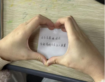 活动现场设置了色彩缤纷的签纸暗藏巧思,既有治愈人心的暖心寄语,也有充满趣味的互动任务。同学们亲手扭出属于自己的惊喜。暖心签将文字里的慰藉藏于心间;抽到互动任务的同学与身边伙伴完成趣味合作。