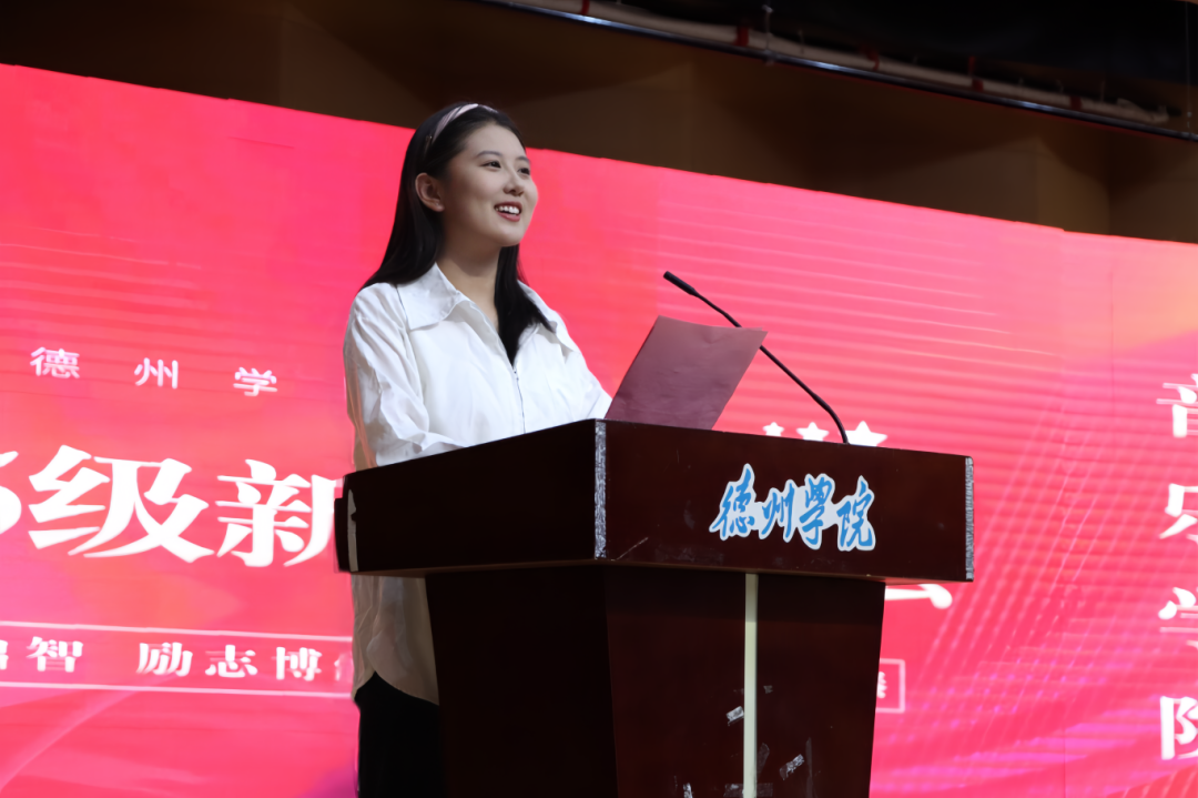 新生代表袁千惠表达了对大学生活的憧憬与期待。她代表全体新生承诺,将牢记师长嘱托,以“强国有我”的信念砥砺前行,秉持勤学善思的态度,尽快适应校园生活,在探索中成长,在奋斗中绽放,努力成为有理想、敢担当的新时代青年。