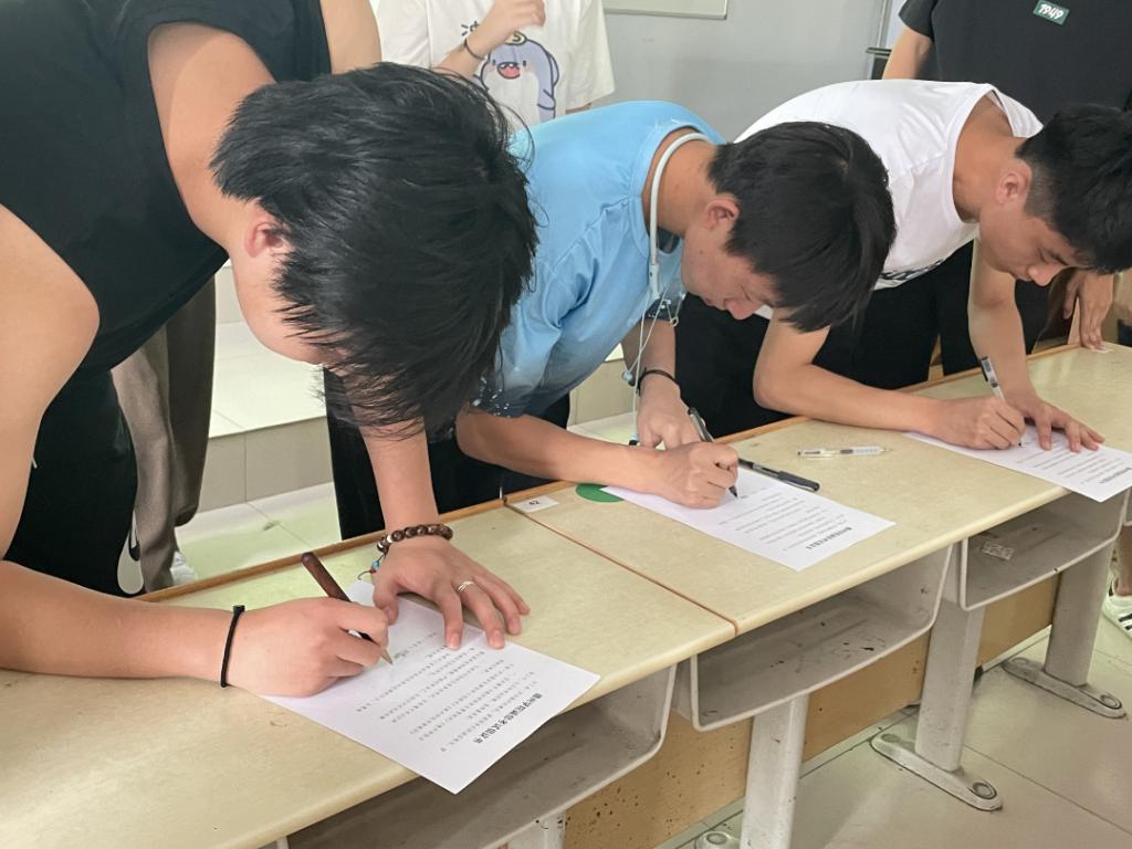 此次活动通过趣味活动,让同学们在欢快的氛围里深刻的认识到诚信考试的重要性。现在即将进入考试阶段,各班同学代表签订考试承诺书,作出诚信应考,拒绝舞弊的决心